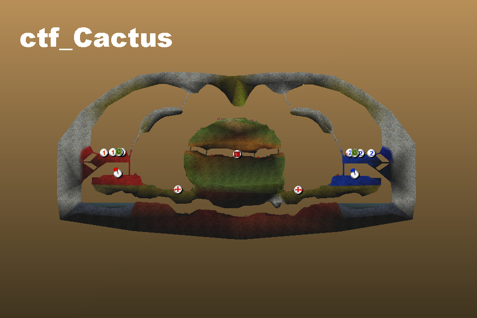 Small CTF map of 2forts type. Not multi-textured. For 2vs2 players.