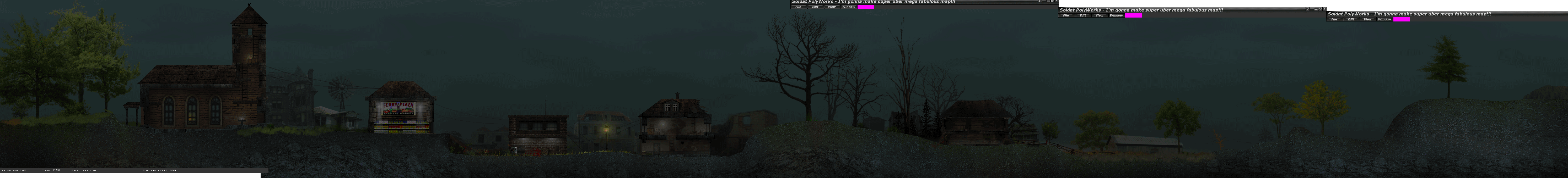 So, my third map if I counted right. When two last maps were for hardcorers, this is for medium skilled. The church's toof and one house's roof are somewhat copied a bit from tw_trainyards. (made by tk) So, some people can wonder why do the zombies spwan from church. The reason for that is, that when the map is running on Dedicated server, zombies may hop around in some places. Or then just stand. I got that problem near the farmer house, and in the marketplace. I tried and tried to solve the problem, but no results. So, because they don't come from somewhere countryside, I'll tell a story for weird spwanplaces: Village's priest, called Ray McCall, was changing from day to day changing weirder and weirder. In one happy day, he then didn't keep worship, and locked all the doors from church. He was inside there for a week, and anybody didn't know what he was doing there. (~fap~fap~fap~) Deep inside his mind, he had came crazy, because of the VERY faithless people in his village. So, in that day, something clicked in his brains. He turned to forces of satan, calling him everyday, and finally, his begging was revarded. a Big smoke came out from holy wine glass, and the church was filled with flames and a great voice what said: ``I have heard you, my humble subject! God has fled, and the darkness prevails! I harness you to my general, I harness you to destroy the humanity! I will wake up the deads, and they shall do what you command them to do. This is how it's written, you shall make it true!´´ Then all the smoke and fire disappeared, and McCall sat down the floor, and an evil smile appeared to his face. For a while he lol'd, then suddenly the ground started to shake. a Hand pushed up through the church's solid rock floor, another, third, and somekind disgusting, bloody zombies came up to service the Satan and his priest, his general. ``Good, my humble people, GO, and destroy everything in your pass!´´ Then they went, broke the door, while the veil of night dropped on earth. People, who were discussing about the priest on market, got naturally scared, and tried to run away but WAY too late. One of them though escaped, doctor called Tim, a good man with big brains and a penis. He headed for farm near the village, where Sheriff McCallister went some time ago. (megetsbored) He told the situation those who were in house, they picked up weapons for sheriff had went to that farm from. You know the rest.