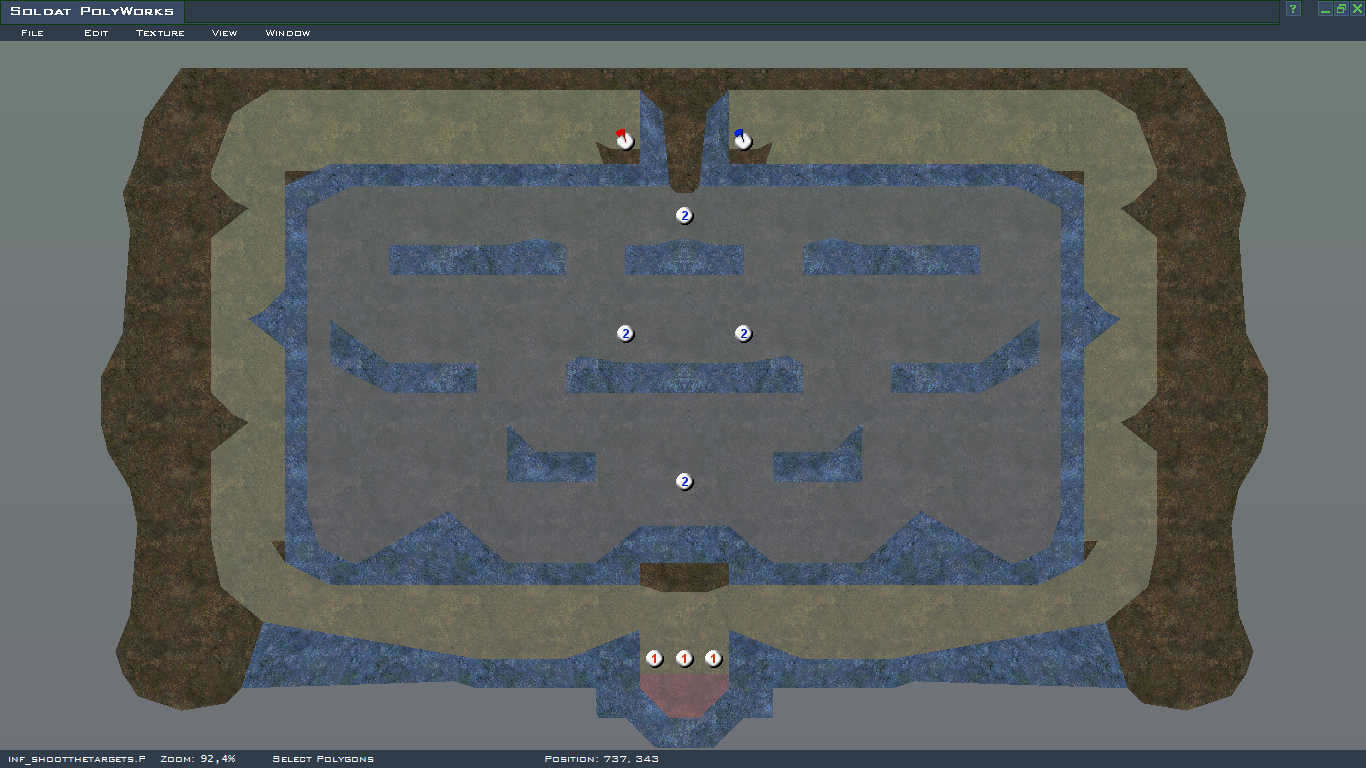 same as inf_shootthetargets. But at these one, only bravo can shoot alpha, blue polygons are = only players collides and only alpha bullets collides. Flag will not fall trhough them.