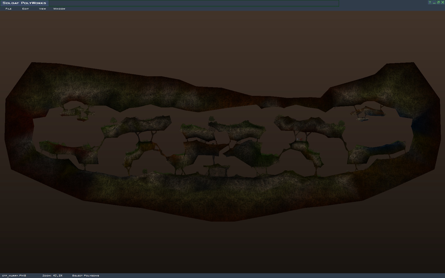 Made a map after a long break. again. This is probably the all time favourite of all I've made. I'm personally a fan of classic soldat map looks, and that's what I was after with this one too. The map is medium to large sized, and mostly mirrored. The center part is by purpose not symmetrical, I designed it so that it would still be balanced, but both teams would have their own slight advantage. Basically the blue team can rush a little faster through the center and the small passage into the lower tunnels, but the red team is closer to the passage leading from the upper passage into the middle route, so they can have a bit more firepower in the middle tunnel area. Those things shouldnt affect gameplay too much in the way or another, but makes it a bit more intresting. I designed the map so that all gun types are useful troughout the map.