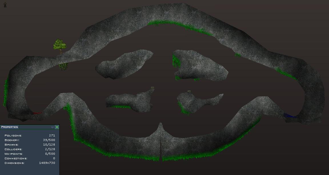 the tree is our "trademark", and about the moss... they grow under rocks in caves: http://image20.webshots.com/21/5/90/34/226059034WPoJvG_ph.jpg. you're right about the lower polys, but that route was way too fast.