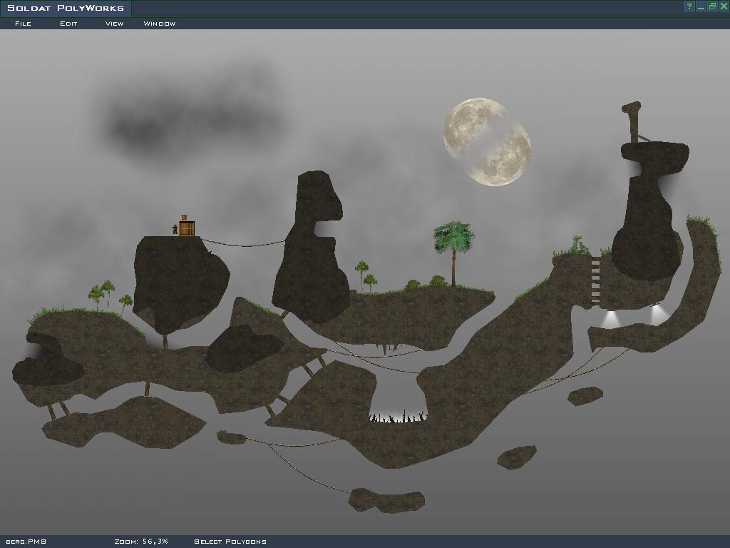 Still, too many open unbounded areas for my taste, and the scenery looks pretty odd, particularly the palm tree and moon. Layout and coloring needs work, too. I think skatepark would make a better TM map.