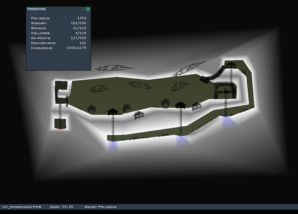 Inf_PaperDuck2. Five teleporters, thus the large map size and poly count. FULLY waypointed, for alpha AND bravo, 'cept alpha can't cap >_> So fecking cool, I'll attach two demos to make up for the crappy OV. Update. Linkzors: http://www.soldatforums.com/index.php?topic=24022.msg280939#msg280939