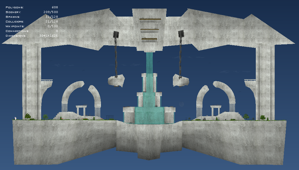 New and improved ctf_Regicide. Colliders in the giant chains and vines in the waterfall help reduce effectiveness of "spray," and the map's layout has gone through a near total revamp to help ensure faster movement and make playing more enjoyable. Regicide is about the same size as and inspired by ctf_Ash. While I think the map should be fine with normal CTF gamemodes, Regicide was specifically designed for Saw & Law.