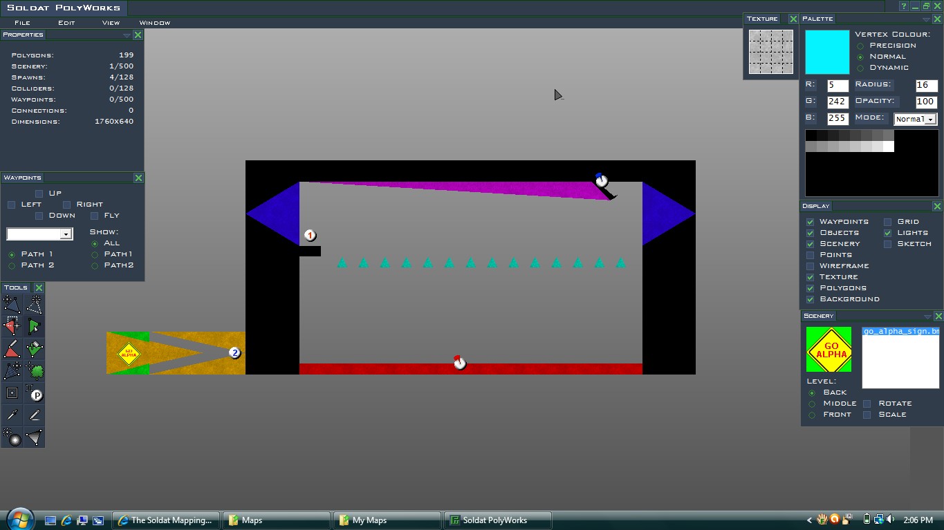 To cap, you'll need to corss to the other side of the map over annoyingly bouncy polys then cap it on the red flag in the middle of the map on top of a kill poly. Becomes more chaotic and fun the more people you play with