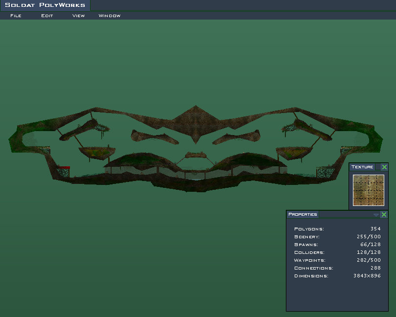 The map's style is traditional Soldat Capture the flag with almost identical team sides. Waypoints are well working and the maps's size is pretty much the standard. There are no new sceneries, polygons etc. Fits best for about 5-10 players per team.