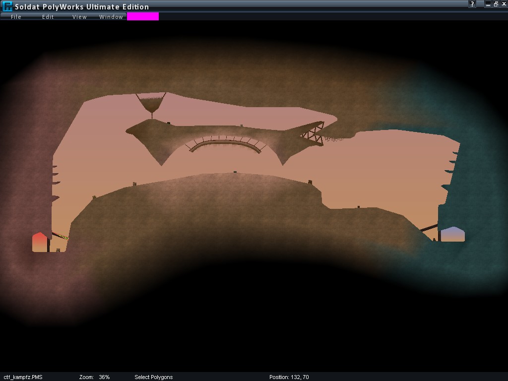 Hello is me again : D. This time I decided to do a remake, totally bugged and ugly appearance ctf_Kampf. I wanted to keep the same gameplay and style of play. I entered only two changes from each other. Bridge(only player collide) to the center of the map and help taking out flags polygon Only Bullets Collide at cap. The rest is simply to improve appearance and valgus Polygons. I think with a more enjoyable game on the map than the angular ctf_Kampf ;) Enjoy