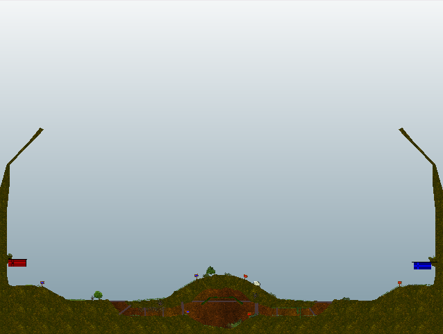 The team camps are set close. Fight through the cave or battle above it. The map is very symmetrical so its good for fair matches.